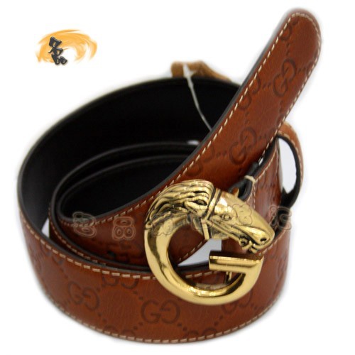 201786 Gucci皮帶 Gucci時尚牛皮男士皮帶 Gucci腰帶 經典馬頭扣古奇男士皮帶 棕色