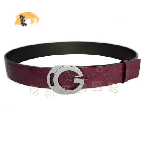 201790 Gucci皮帶 Gucci時尚牛皮雙G壓花女士皮帶 古奇皮帶 漆皮腰帶 紫紅色銀扣