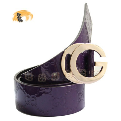 201790 Gucci皮帶 Gucci時尚牛皮雙G壓花女士皮帶 古奇皮帶 漆皮腰帶 紫色金扣