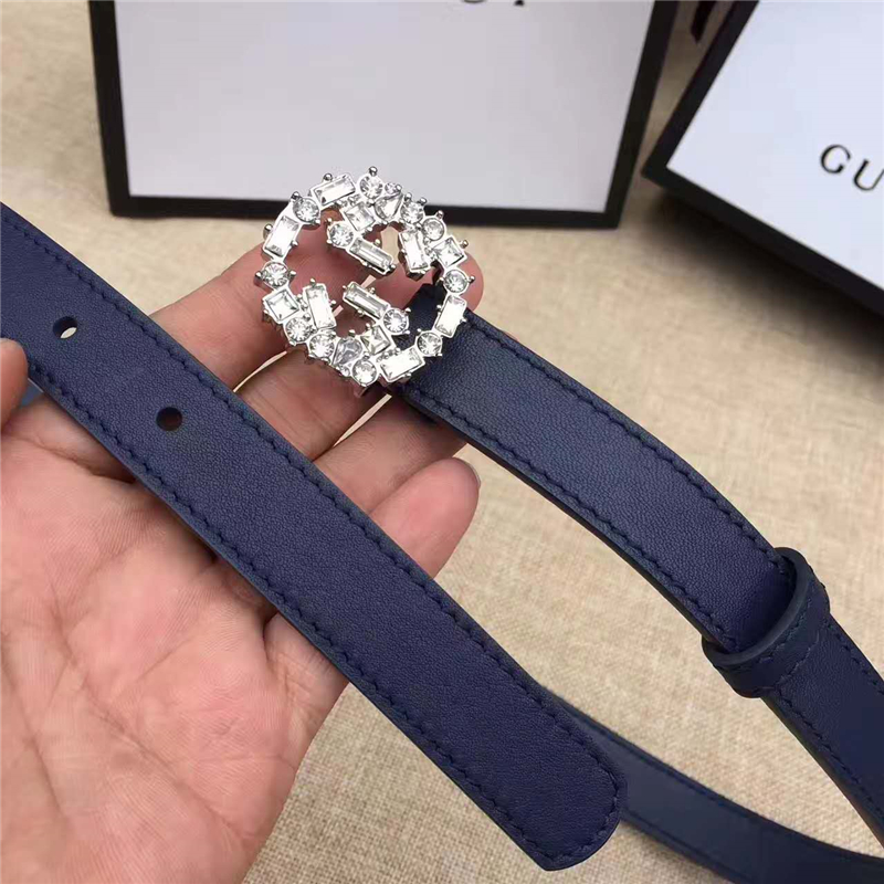 - Gucci 新款 原版牛皮 山茶花中間鑲珍珠雙G 女士腰帶 藏藍色