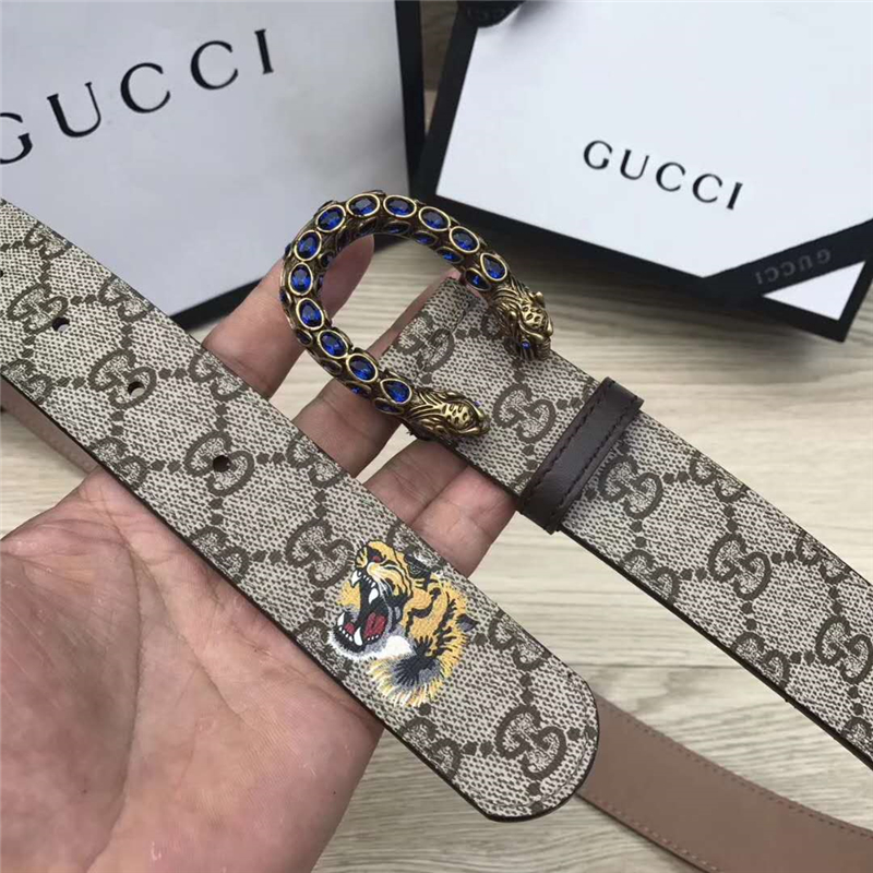 411924 GUCCI 古馳 2017時尚暢銷款 女腰帶 仿古銅龍頭扣 藍鉆虎頭紋