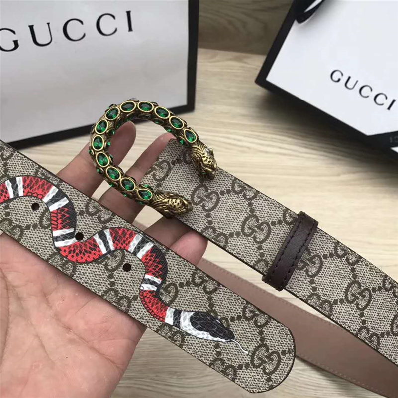411924 GUCCI 古馳 2017時尚暢銷款 女腰帶 仿古銅龍頭扣 綠鉆蛇紋