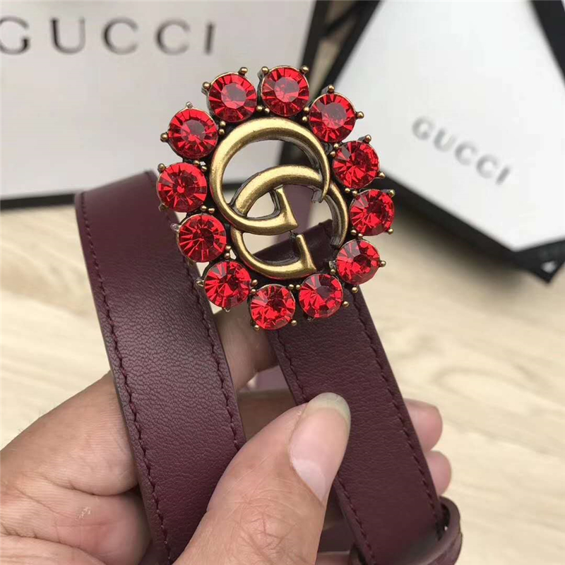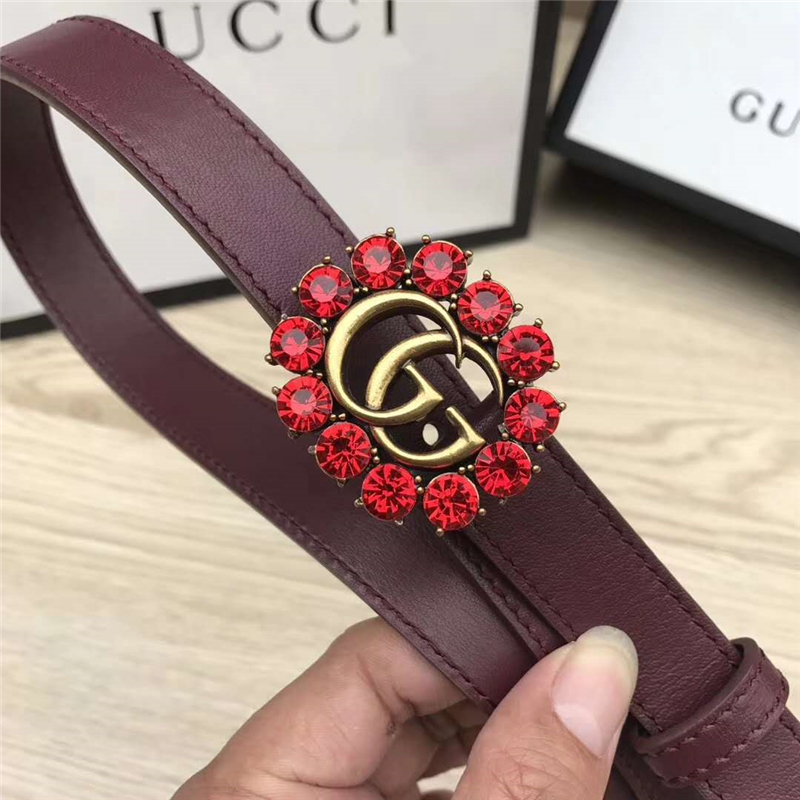 當(dāng)前位置: 首頁>Gucci|古奇>Gucci皮帶> Gucci 模特走秀款 紅色水晶 雙G帶扣 皮革腰帶 葡萄紫