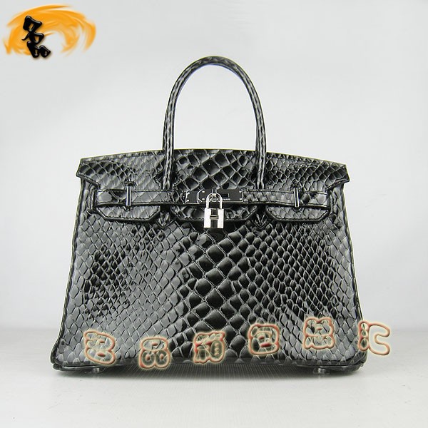 - 6088 愛馬仕女包 Hermes手提包 Hermes Birkin 鉑金包 魚紋(30) 黑色銀扣