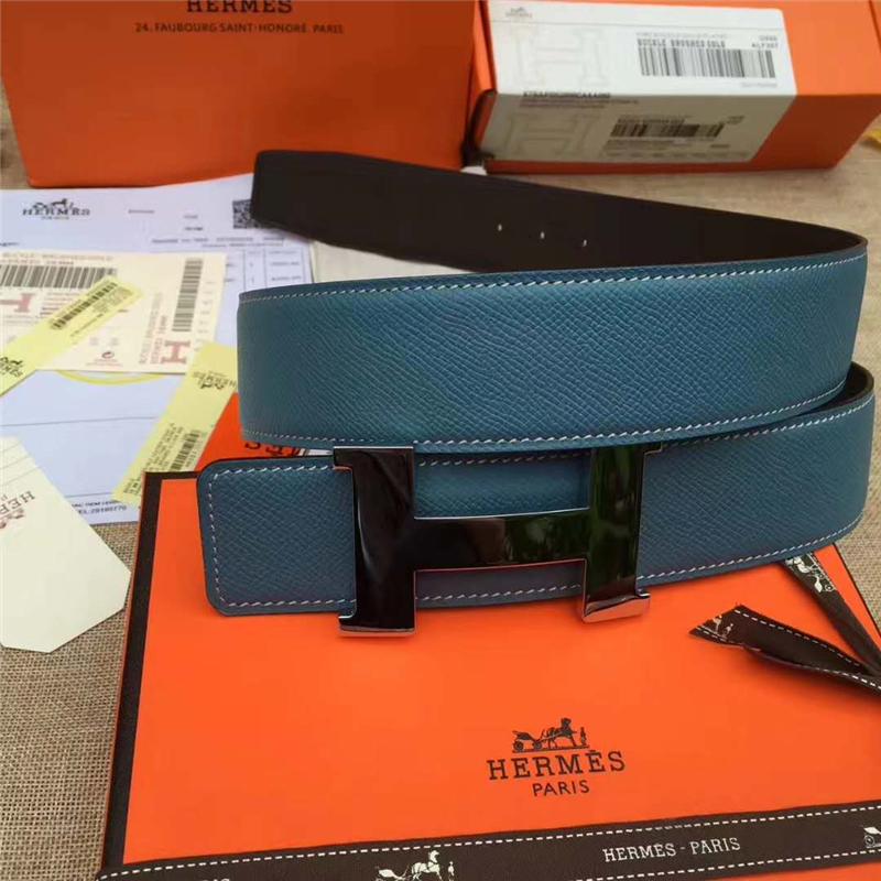 42082055 HERMES 愛馬仕 原版進口牛皮 雙面使用 進口機車車線 不銹鋼扣頭 藍配黑