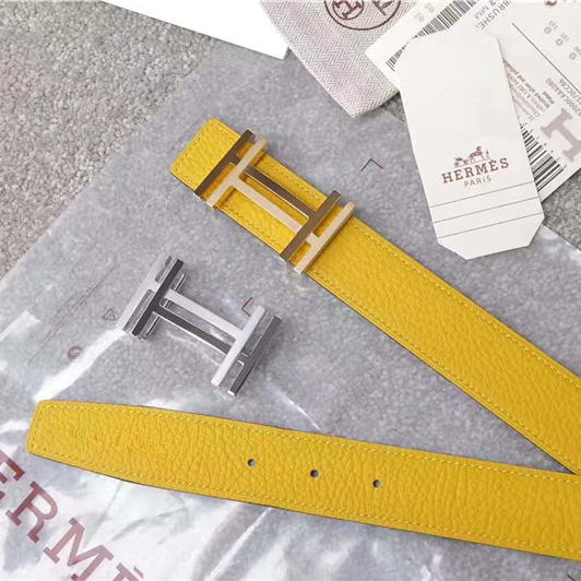 • HERMES 愛馬仕 愛馬仕腰帶 荔枝紋雙用腰帶 進口機車車線 黃色