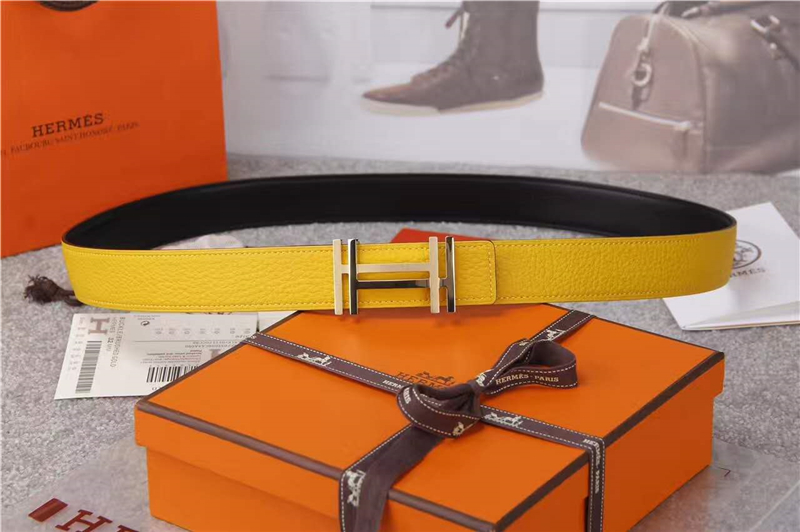 HERMES 愛馬仕 愛馬仕腰帶 荔枝紋雙用腰帶 進口機車車線 黃色