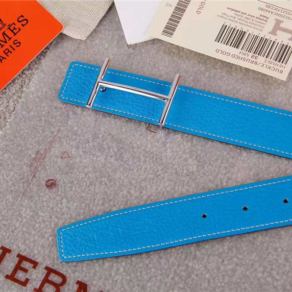 HERMES 2017經(jīng)典款 進(jìn)口牛皮 原版 不銹鋼扣頭 銀扣藍(lán)色色帶身