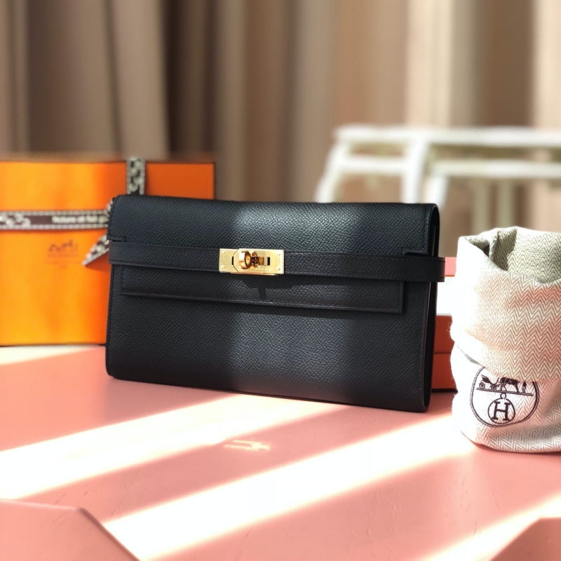 • Hermes錢包 愛馬仕Kelly錢包 純手工頂級Epsom皮 黑色