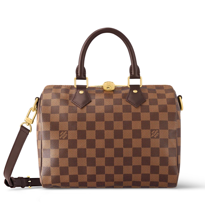N41368 LV Speedy 25 手袋(配肩帶)Damier Ebene 涂層帆布枕頭包