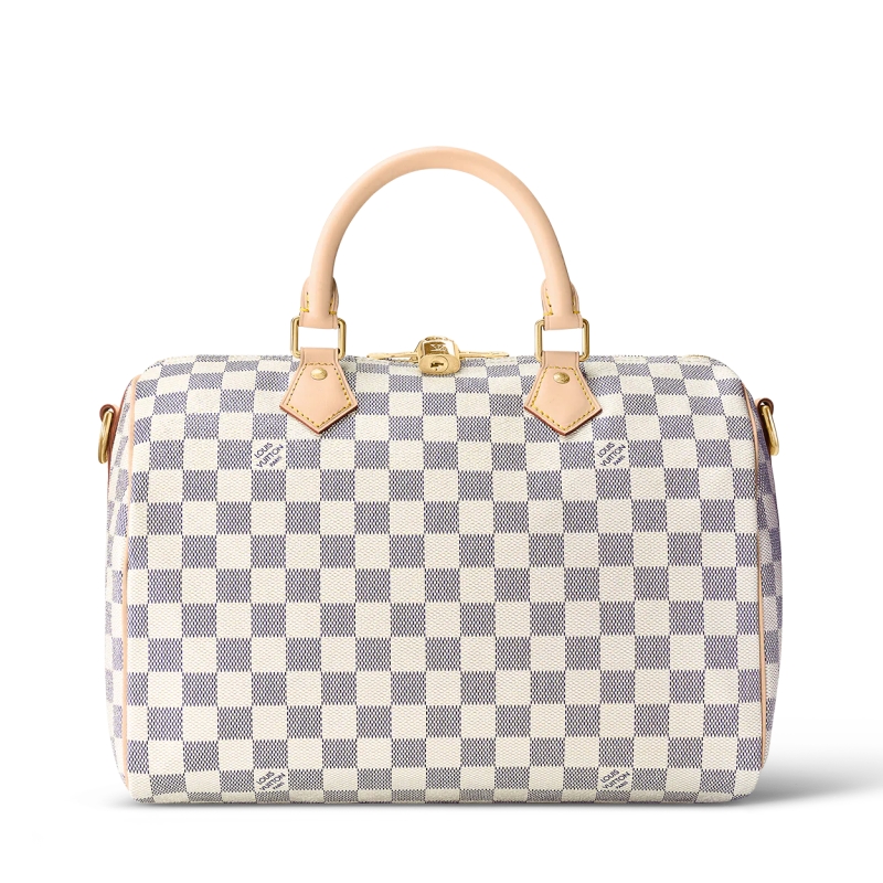 • 詳細介紹:本款 Speedy 30 手袋取材亮澤 Damier Azur 帆布,乃夏日都市出行良伴。原為 1930 年代的旅行者而設計,以 Speedy 之名向那個急劇變革的年代致敬。從標志性的造型到翻卷皮革手柄、刻字掛鎖與可脫卸包帶,每一處細節已成經典。