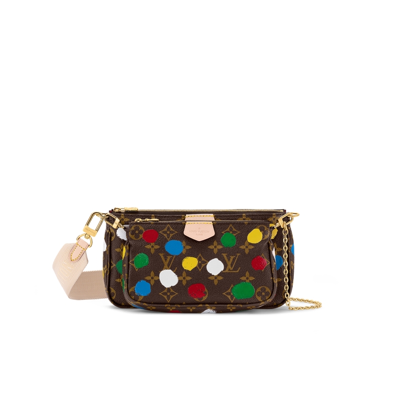 - 詳細介紹:本款 LV x YK Multi Pochette Accessoires 手袋出自路易威登 x 草間彌生合作系列。這位日本藝術家自 1950 年代起以波點圖案抒發藝術思考,此次將這一元素繽紛呈現于 Monogram 帆布,其立體肌理恰似手工繪制。肩帶、鏈條和可拆卸零錢包完善功能設計。