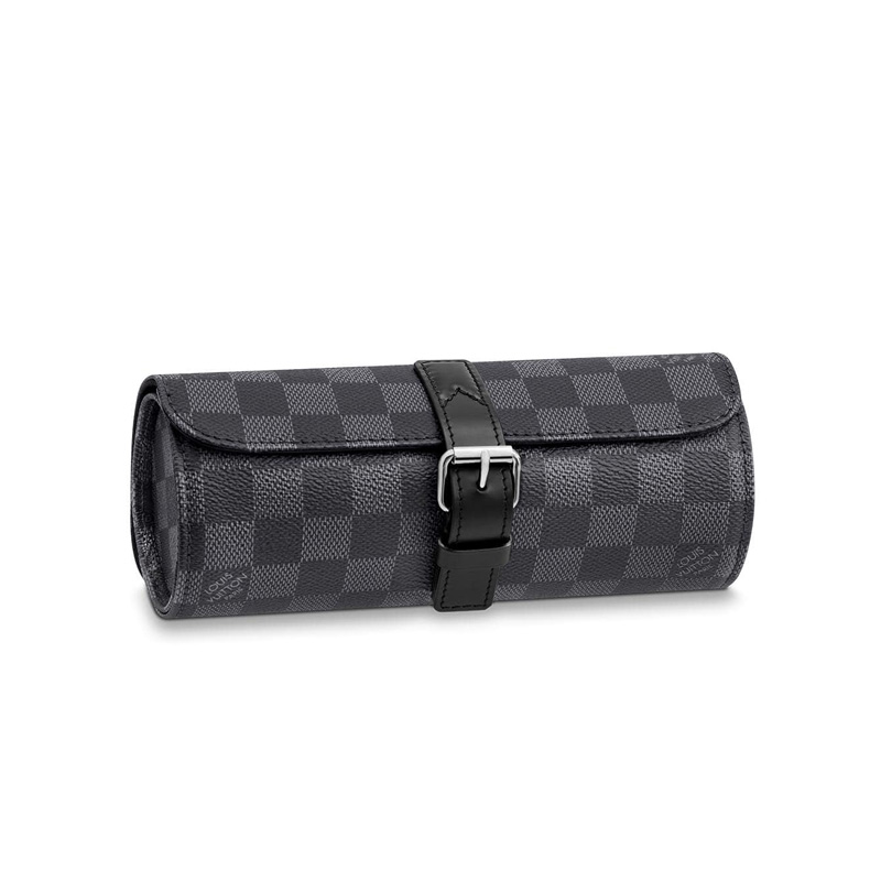• 詳細介紹: 這款3枚裝腕表盒以Damier Graphite 帆布制成,能為尤其多3只男士手表提供柔軟的全方位保護,并能輕松放入手提箱或手袋中,是一款優雅的旅行配件。