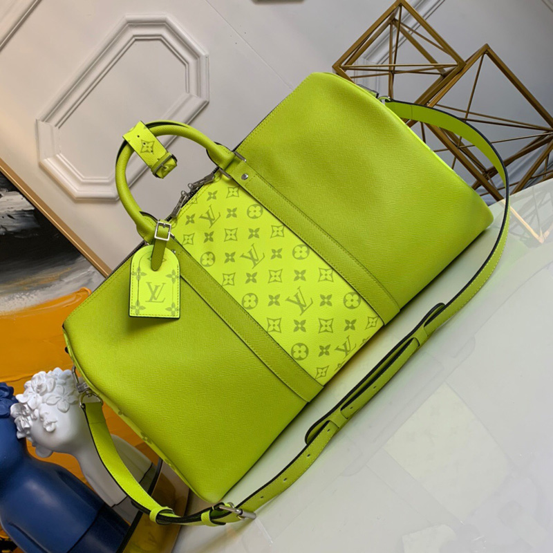 M30235 LV KEEPALL 45旅行袋(配肩帶) LV Taiga 皮革旅行袋 黃色
