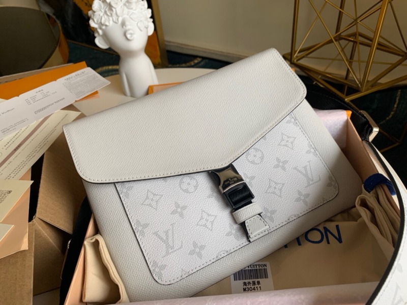 M30411 LV OUTDOOR FLAP 信使包 Taiga 皮革配帆布男包 白色