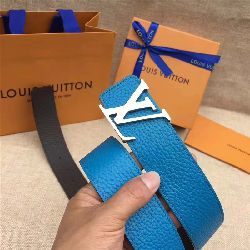 LV皮帶 原單品質 專柜新包裝 進口牛皮 手工縫線 雙面可用 湖藍色