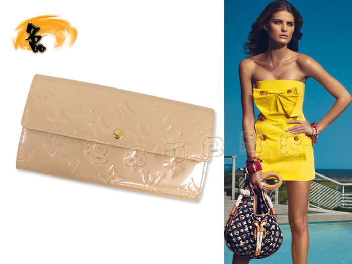- M91522 LV錢包 LV漆皮女包 LV亮皮包 LV長款錢夾 LV壓花女士錢夾 杏色