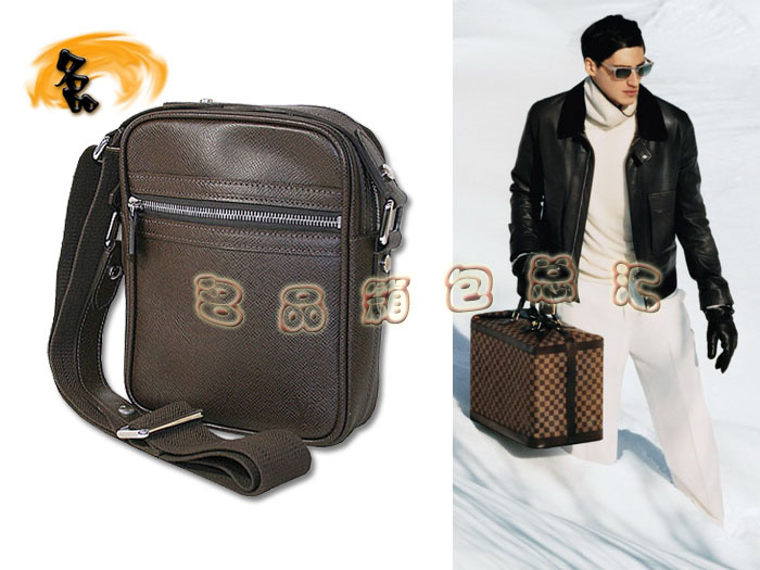 - M32468 LV最新款 LV斜挎包 LV十字紋 LV真皮男包 LV牛皮挎包 啡色