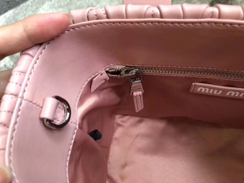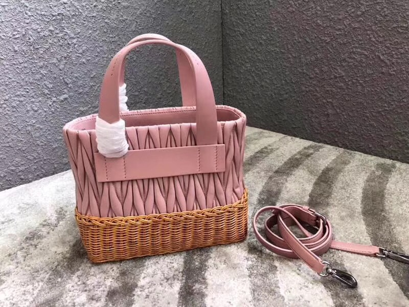 5BA076 MIUMIU專柜新款 小羊皮 編織柳條 方形桶包 粉色