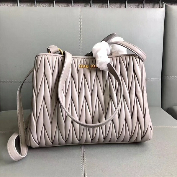 • 5BG103 MIUMIU繆繆 專柜新款 進口羊皮 三層手提斜跨包 灰色
