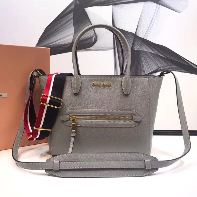 5BG137 MIUMIU專柜新款蝙蝠包 山羊皮 雙提手 單肩斜跨包 灰色