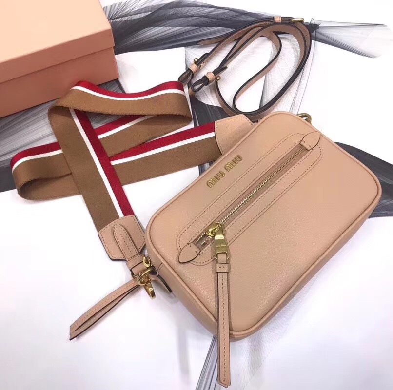 • 5BH116 繆繆專柜新款相機包 山羊皮 長方形 單肩斜跨包 卡其色