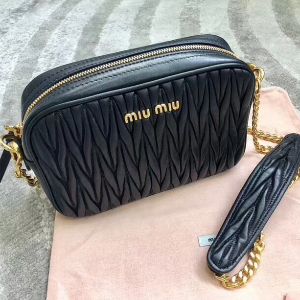 5BH118B MIUMIU專柜新款 褶皺小羊皮 相機包 黑色