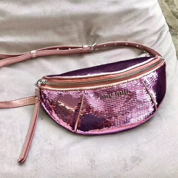 5BL010 MIUMIU 專柜新款 手工珠刺繡 亮片腰包 紫色