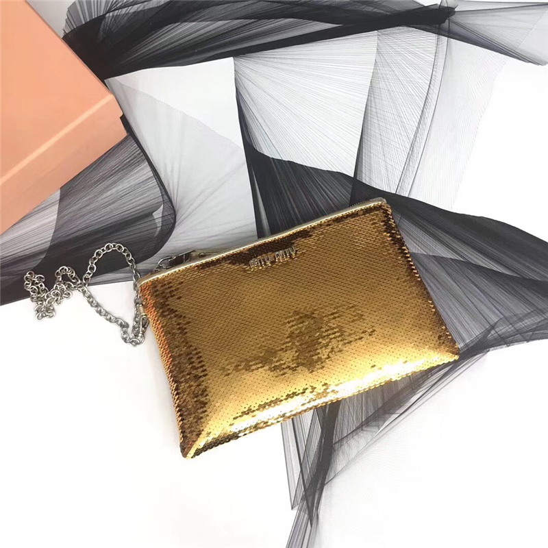 5NH81C MIUMIU專柜新款 手工珠刺繡 亮片單肩手拿包 金色