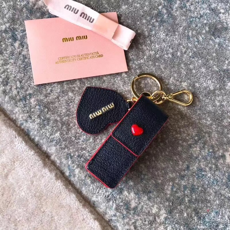 5TL359 MiuMiu鑰匙扣 繆繆專柜新款 山羊皮 口紅鑰匙扣 黑色