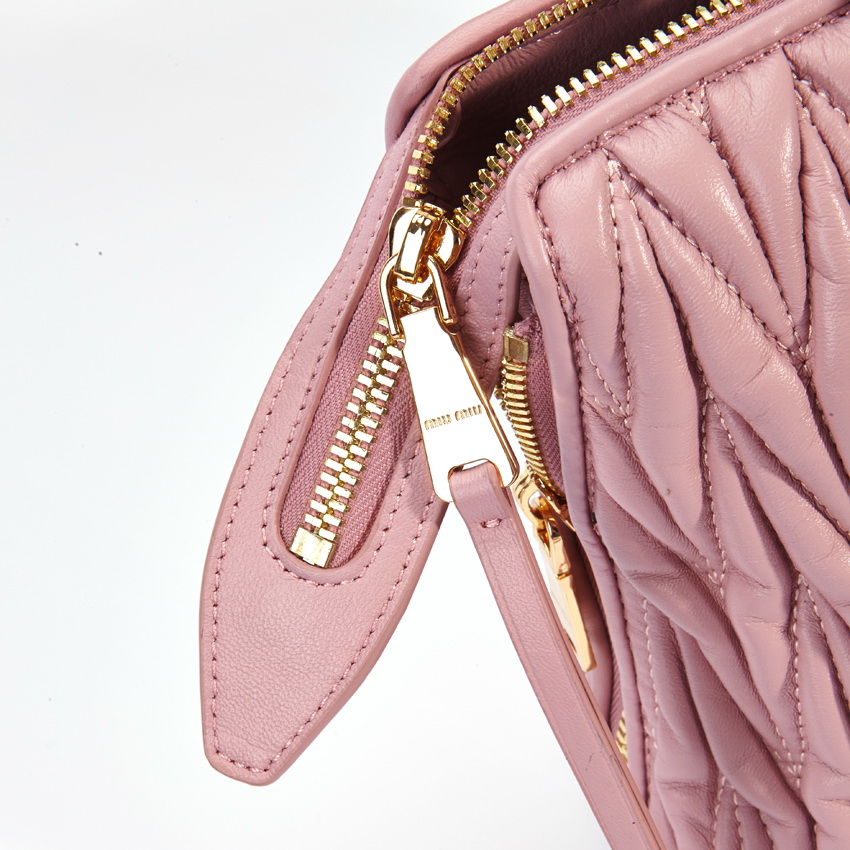 • M048 MiuMiu 繆繆最新款 原版繡花羊皮手提袋 蝦肉粉