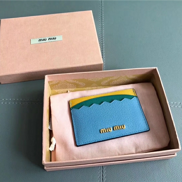 5MC208 MiuMiu卡包 波浪拼色系列 進口牛皮山羊紋 繆繆拼色卡包 藍黃綠