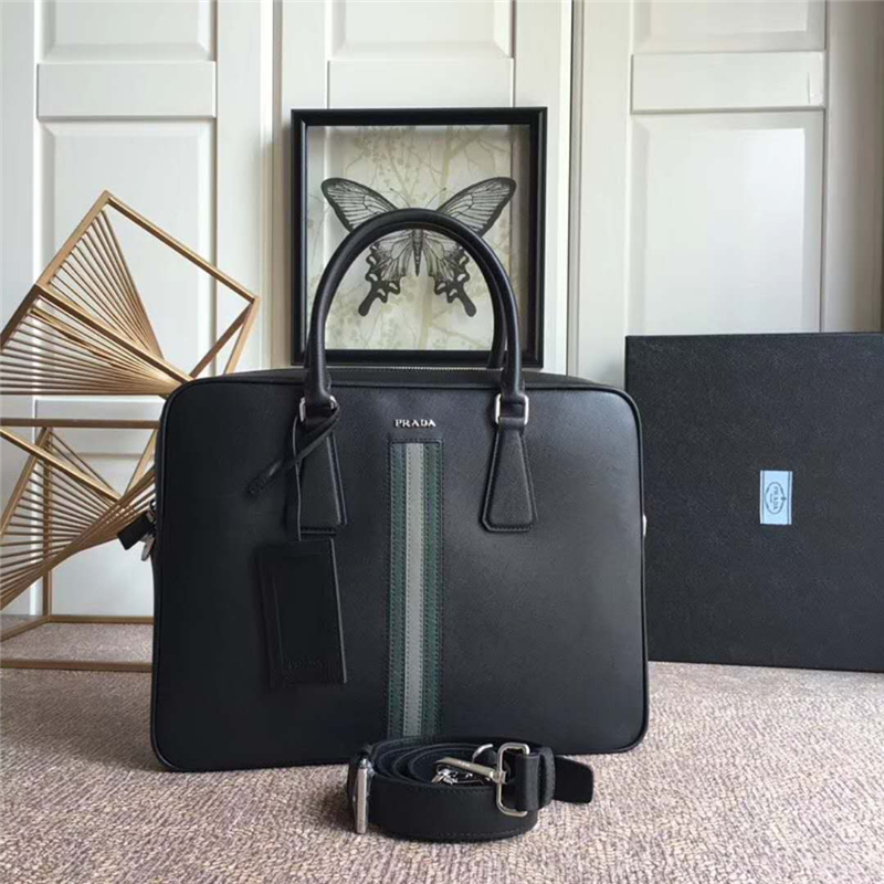 • 2VE0363R Prada普拉達男包 Prada男士公文包 十字紋手提包 黑色