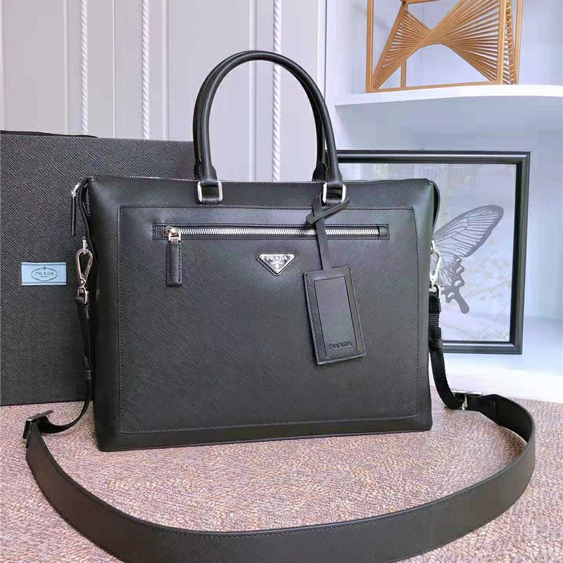 2VG044 Prada男士公文包 Saffano皮革 Prada手提包 黑色