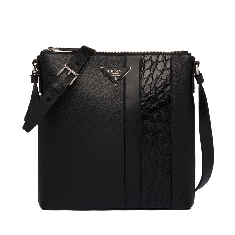 當前位置: 首頁>Prada|普拉達>Prada男包> 2VH089 Prada普拉達 Saffiano 斜挎包 鱷魚紋飾邊郵差包 黑色