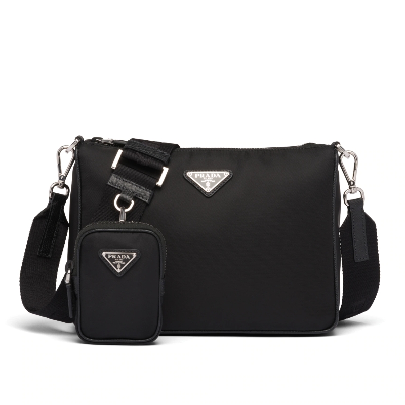 • 2VH113 Prada普拉達尼龍單肩斜挎包 三合一郵差包 黑色