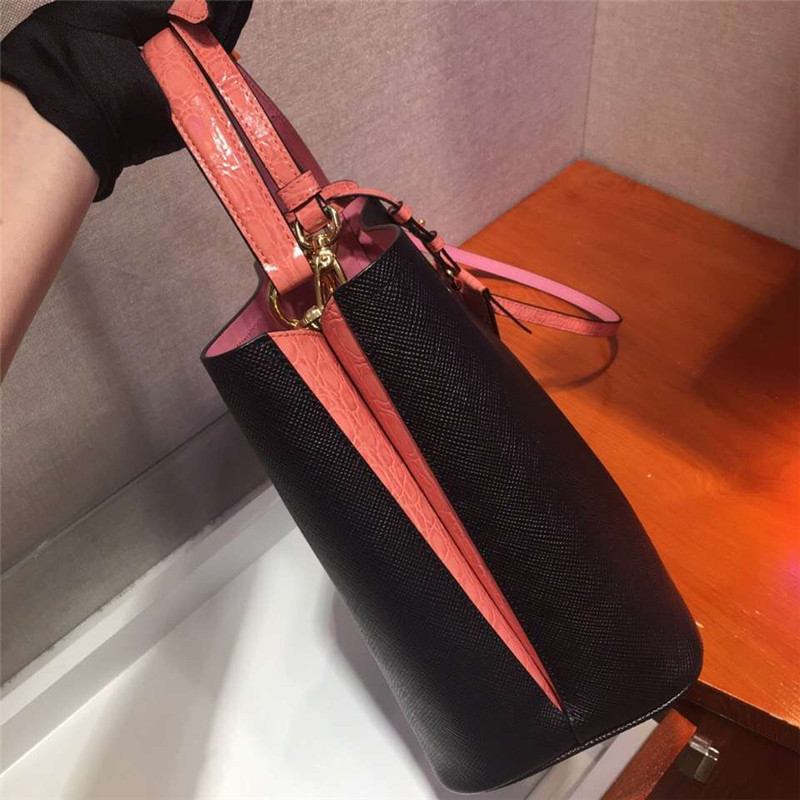 當前位置: 首頁>Prada|普拉達>Prada女包> 1BA212 Prada New Double 撞色鱷魚牛皮 普拉達手提包 黑拼粉