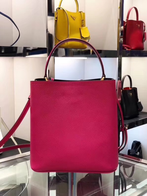 1BA212 Prada New Double 手袋 Prada手提包 普拉達水桶包 普拉達牛皮包 玫紅黑