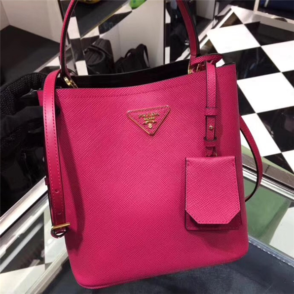 當前位置: 首頁>Prada|普拉達>Prada女包> 1BA212 Prada New Double 手袋 Prada手提包 普拉達水桶包 普拉達牛皮包 玫紅黑