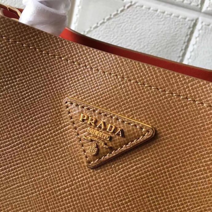 • 1BA212 Prada New Double 手袋 Prada手提包 普拉達水桶包 普拉達牛皮包 焦糖色
