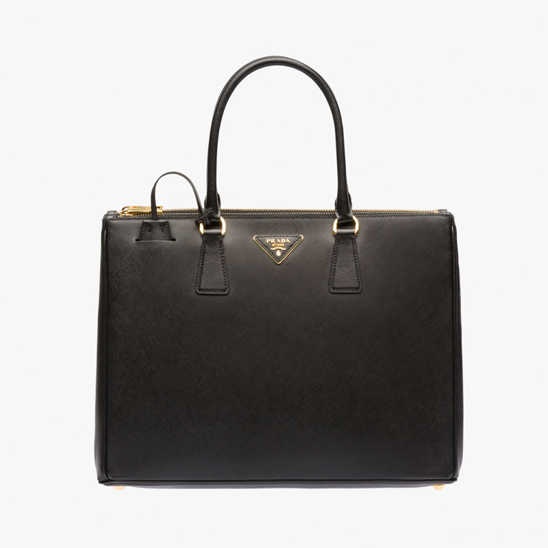 - 結構:Prada Galleria Saffiano皮革手袋雙皮革手柄可拆可調式皮革肩帶鍍金配件三角形皮革金屬字母徽標側面按扣閉合兩個拉鏈外袋三個內袋,其中包括一個拉鏈袋Prada徽標襯里