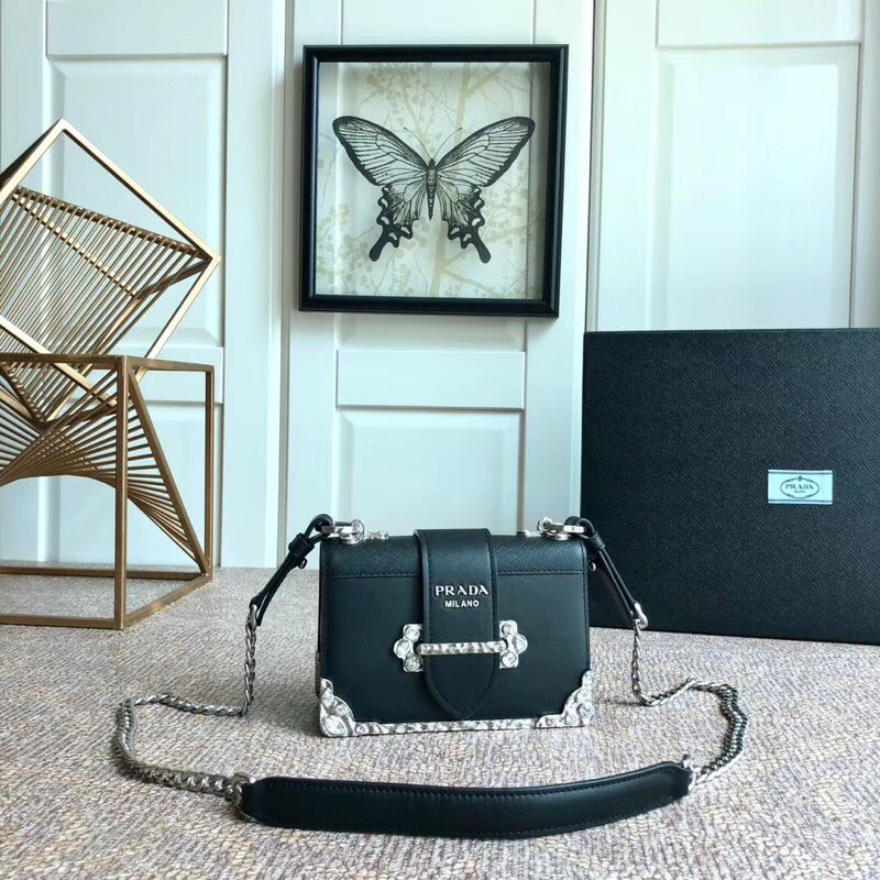 >Prada|普拉達(dá)>Prada女包> 1BD018 Prada單肩包 頂級(jí)寶石五金 時(shí)尚女士休閑包 Prada女包 進(jìn)口牛皮 黑色商品描述
