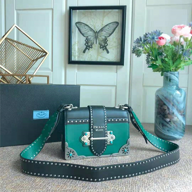 1BD045 Prada Cahier手袋 宮廷款 小牛皮女包 金屬柳釘 普拉達單肩包 綠色
