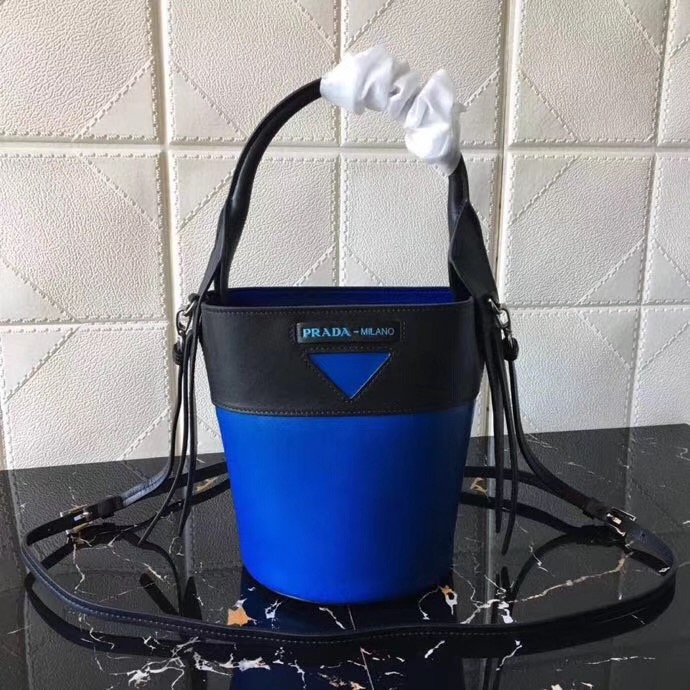 當前位置: 首頁>Prada|普拉達>Prada女包> 1BE015 Prada Ouverture女包 軟牛皮 普拉達手提包 Prada皮革水桶包 黑拼藍