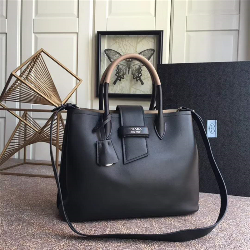 當(dāng)前位置: 首頁>Prada|普拉達(dá)>Prada女包> 1BG148 Prada普拉達(dá) 進(jìn)口小牛皮 拼色拼皮 女手提包 黑色
