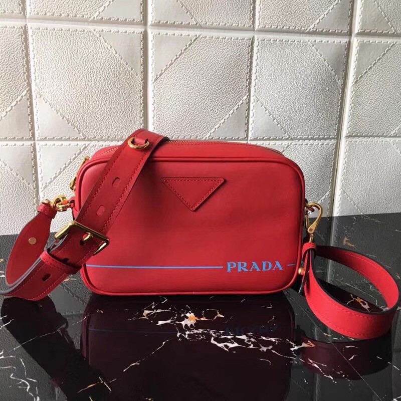 1BH093 Prada普拉達 進口牛皮 簡約 普拉達單肩包 紅色