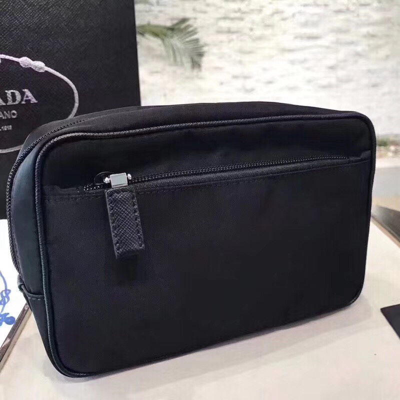 2NA006 Prada新款 防水尼龍面料配牛皮 普拉達手拿包 化妝包 黑色