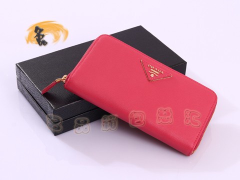 - 1M0506 Prada最新款 Prada十字紋牛皮拉鏈錢包 普拉達(dá)長款錢夾 Prada錢包 玫紅色