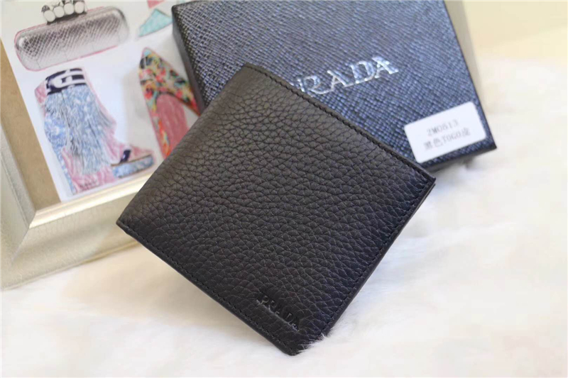 2MO513 Prada普拉達 TOGO皮革 荔枝紋 雙折短款錢包 黑色