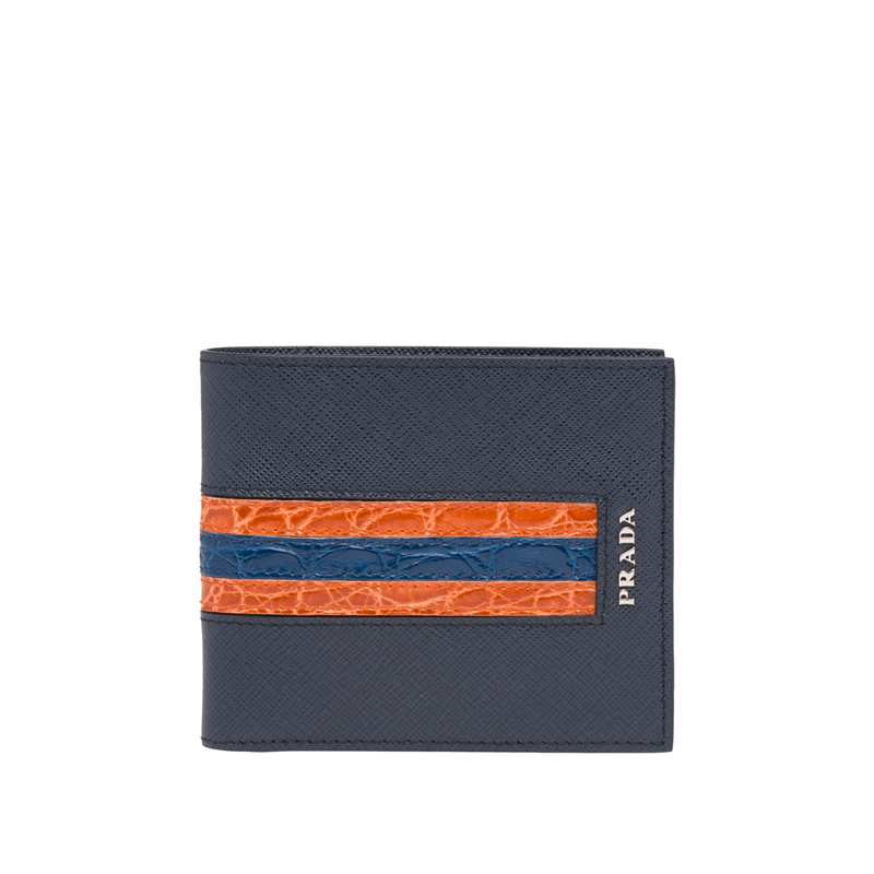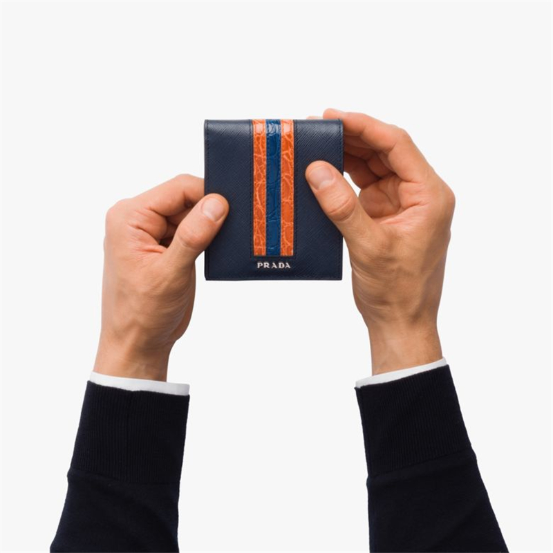 當前位置: 首頁>Prada|普拉達>Prada錢包> 2MO513 Prada普拉達 Saffiano配鱷魚皮 雙折短錢夾 橙拼藍